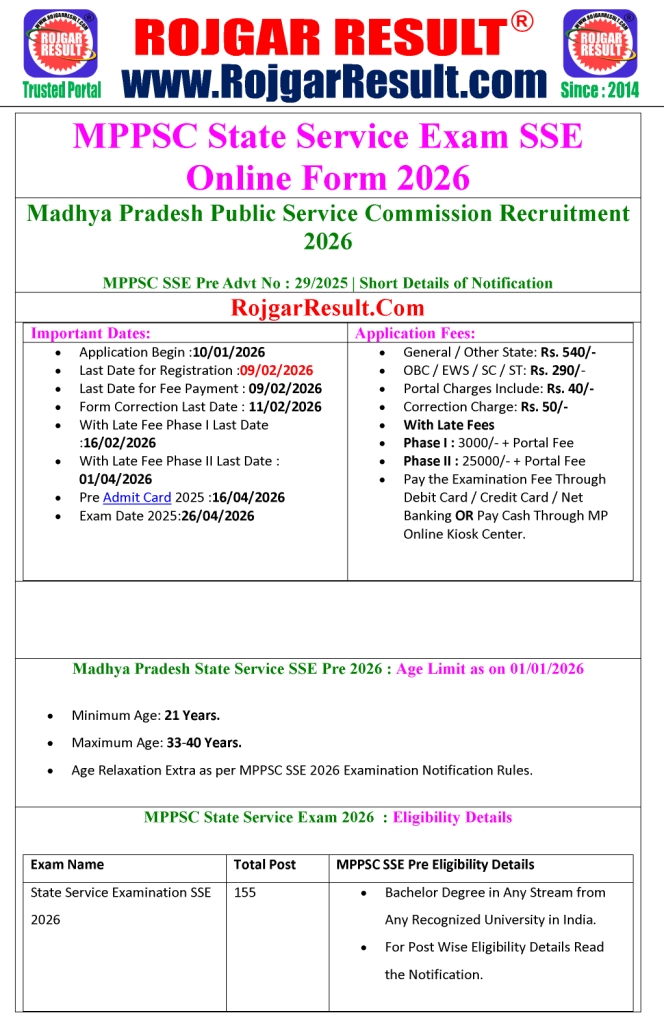 - Candidate Read MPPSC SSE Notification 2026 very carefully before Apply the Recruitment Application Form.
